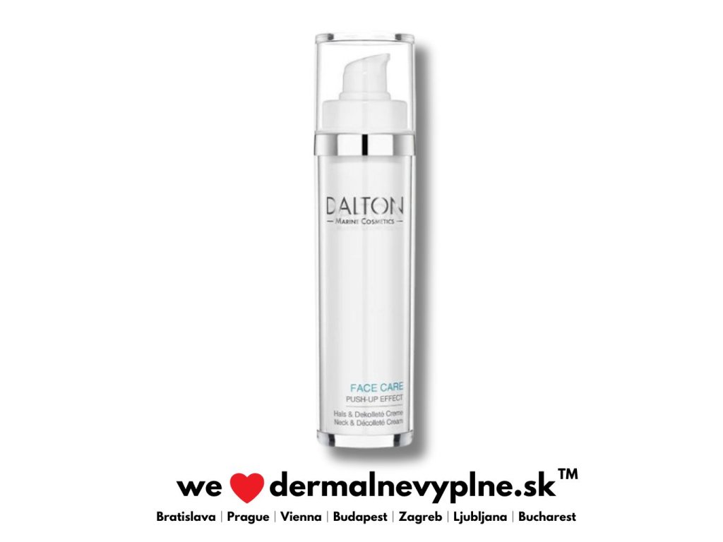 Náš krém na krk a dekolt proti starnutiu má vyhladzujúce zloženie, ktoré zanecháva krásny a pevný dekolt. Krém na krk obsahuje kombináciu nášho silného morského extraktu Celumer proti starnutiu a extraktu z planktónu, účinného vypĺňača vrások. V dôsledku poškodenia slnkom a neustáleho pohybu krku je jemná pokožka na krku a dekolte obzvlášť náchylná na prejavy starnutia. Problémy v tejto oblasti pokožky môže spôsobiť aj spánok na boku. Nezabudnite preto do svojej každodennej rutiny starostlivosti o pleť zahrnúť produkty proti starnutiu, ktoré sú špecifické pre krk! Náš spevňujúci krém na krk bol špeciálne navrhnutý na riešenie týchto problémov. Hydratačný krém sa rýchlo vstrebáva, dodáva pokožke dostatok vlhkosti a viditeľne vyhladzuje vzhľad krepovej pokožky, jemných liniek a vrások – pre výrazne pevnejšiu a hladšiu pokožku krku a dekoltu. Krém na krk a dekolt je možné kombinovať s celým radom starostlivosti o pleť DALTON.