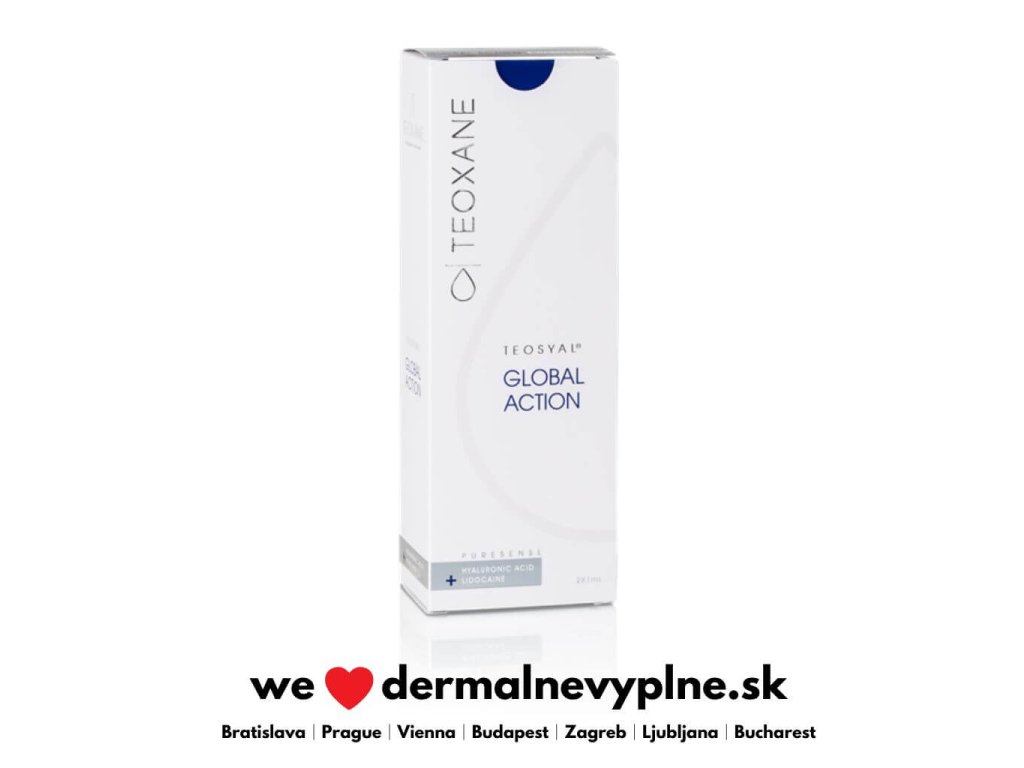 Teosyal PureSense Global Action je účinná a dlhodobo fungujúca dermálna výplň na báze kyseliny hyalurónovej určená na liečbu vrások na tvári. Teosyal PureSense Global Action sa odporúča na liečbu jemných vrások, kožných defektov, miernych alebo stredne ťažkých nasolabiálnych rýh, ako aj vrások v periférnej a glabellovej oblasti v strednej vrstve dermy. Výrobok obsahuje lidokaín, silné anestetikum pre pohodlnejšiu aplikáciu.