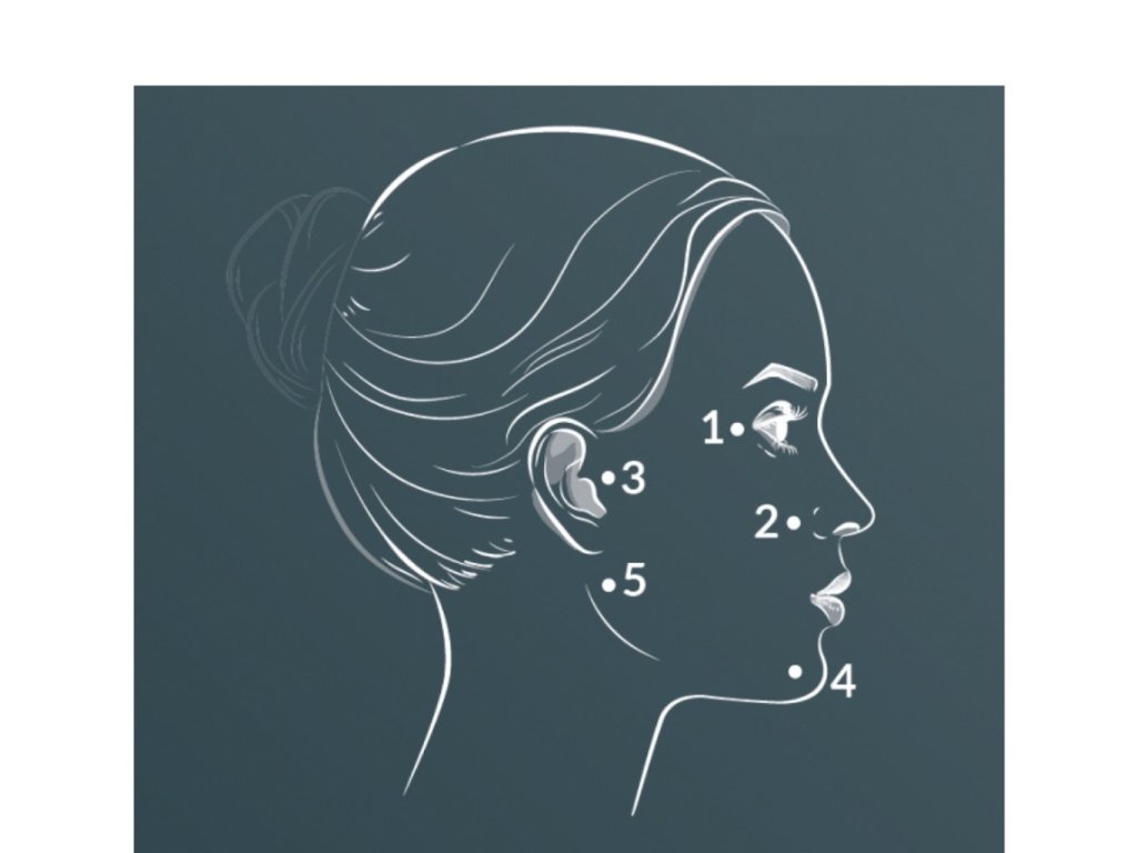 • 5 Bodová technika spočíva v zavedení ihly kolmo do hlbokých vrstiev dermis a ponechaní asi 0,1-0,3 ml na 1 bod.