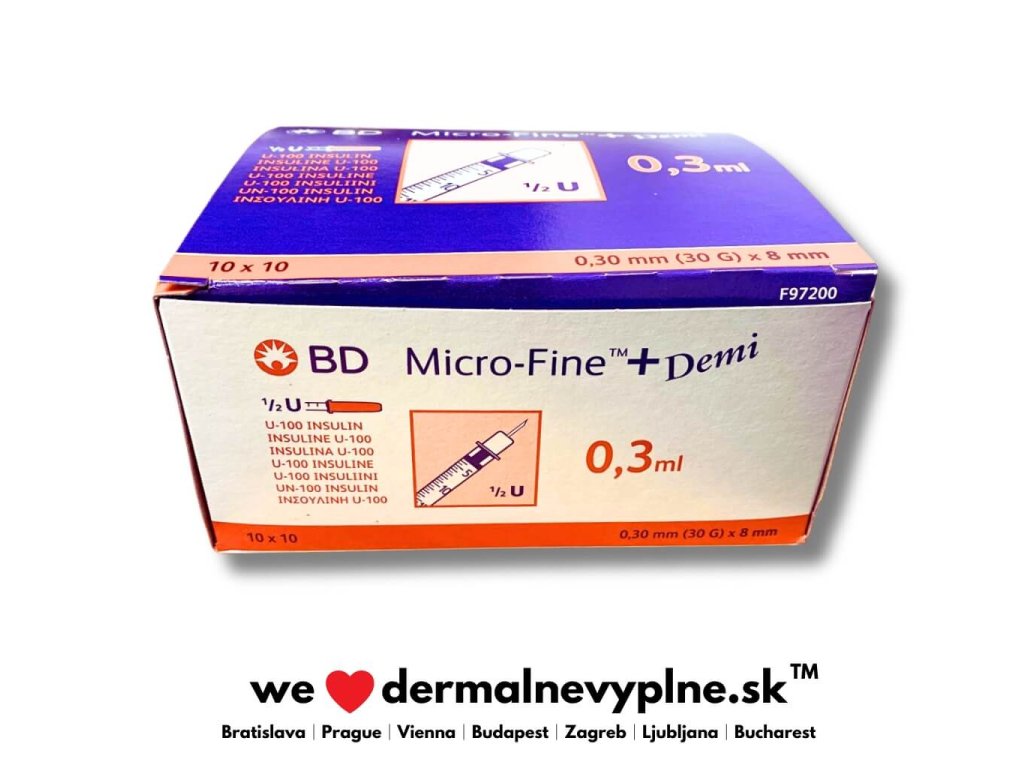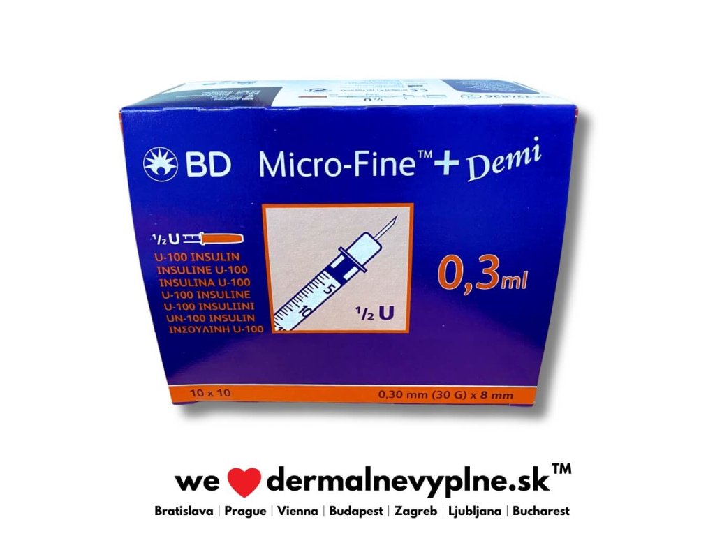 BD striekačka 0,3 ml, Micro-Fine + Demi 0,30mm (30G)x 8 mm, inzulínové striekačky, 10x10 ks
