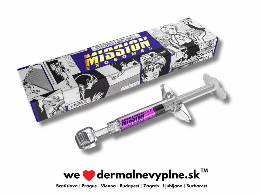 MISSION EXOSOMES - Je purifikovaný gél na báze kyseliny hyalurónovej s nízkou a vysokou molekulovou hmotnosťou, kombinovaný s exozómami, rastovými faktormi, peptidmi, nukleotidmi, aminokyselinami a vitamínmi.