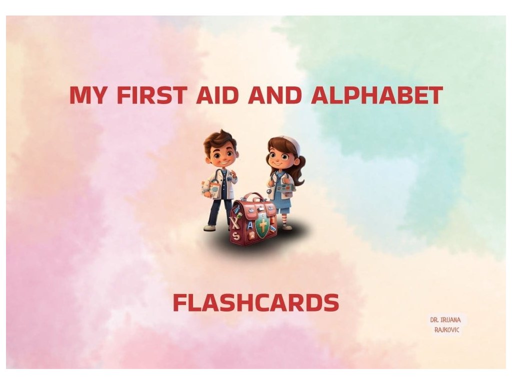 Moja prvá abeceda prvej pomoci – kartičky (flashcards) - Sú hravým, praktickým vzdelávacím nástrojom navrhnutým na upevňovanie anglickej abecedy a základného povedomia o prvej pomoci prostredníctvom interakcie a opakovania. Vytvorené ako ideálny doplnok ku knihe, tieto kartičky pomáhajú deťom zapamätať si, rozpoznávať a precvičovať kľúčové pojmy zábavným spôsobom primeraným ich veku. Sú napísané v anglickom jazyku a slúžia ako doplnok k detskej knihe My First First Aid Alphabet. Deti sa neučia iba počúvaním. Učia sa dotykom, ukazovaním, opakovaním a hrou.