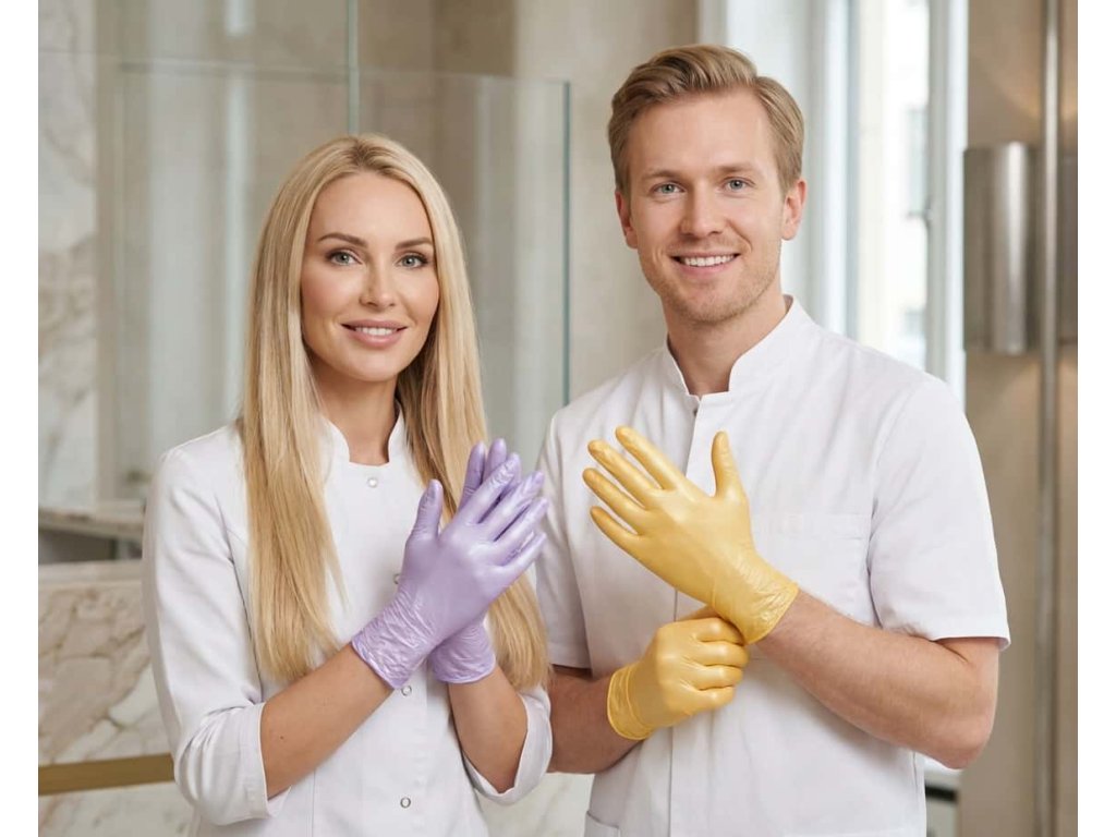 Nitrilové rukavice NITRIL SPARKLE perleťovo fialové - sú vyrobené zo 100% syntetického nitrilu. Rukavice neobsahujú púder ani latex a nespôsobujú alergické reakcie. Veľmi dobre sa nosia a po krátkom čase sa prispôsobia Vašej ruke. Rukavice sú pevné a majú veľmi dobrú odolnosť voči tekutinám. Materiál nitrilových rukavíc SPARKLE dosahuje až 0,12 mm hrúbky a poskytuje tým zodpovedajúcu ochranu pri práci. Vďaka svojej hrúbke majú rukavice výbornú odolnosť proti prepichu. Majú vysokú pružnosť – môžete ich natiahnuť na viac ako 5 násobok svojej pôvodnej dĺžky.