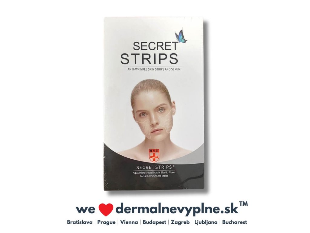 - Počas nosenia Secret Strips elastické napätie zároveň obmedzuje mimické pohyby, čím kontroluje a predchádza vzniku nových vrások a záhybov, ktoré sú často dôsledkom mimiky tváre.