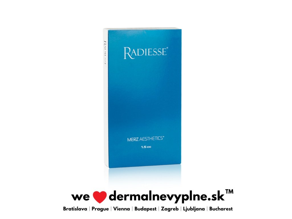 Radiesse 1,5 ml je produkt novej generácie, tzv. tkanivový stimulátor. Obnovuje štruktúru pokožky stimuláciou produkcie kožných buniek, kolagénu a elastínu. Dodá objem, pomáha vyhladzovať a redukovať stredne ťažké až ťažké vrásky na tvári a má okamžitý liftingový a spevňujúci účinok na pokožku. Po injekčnom podaní zabezpečí Radiesse objem a zdvih potrebný na zmiernenie príznakov starnutia. Výrobok sa v priebehu času plne vztrebe.
